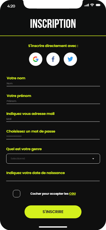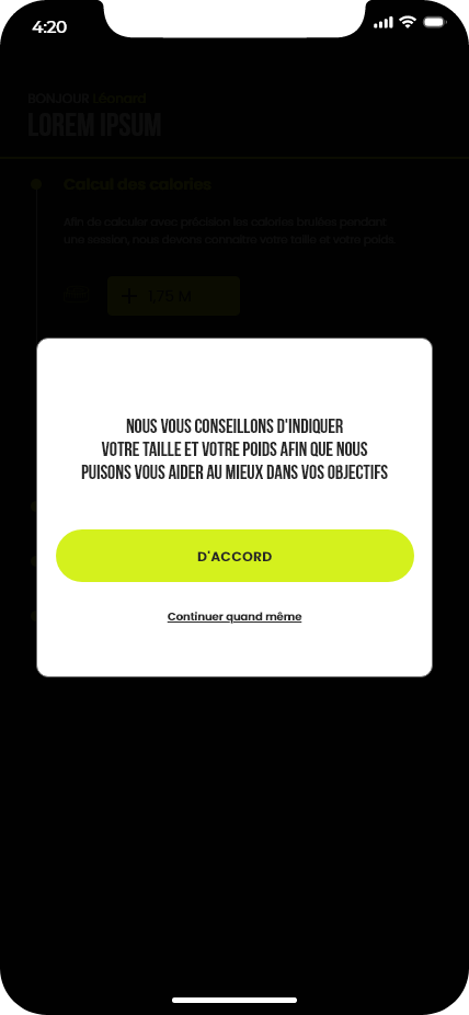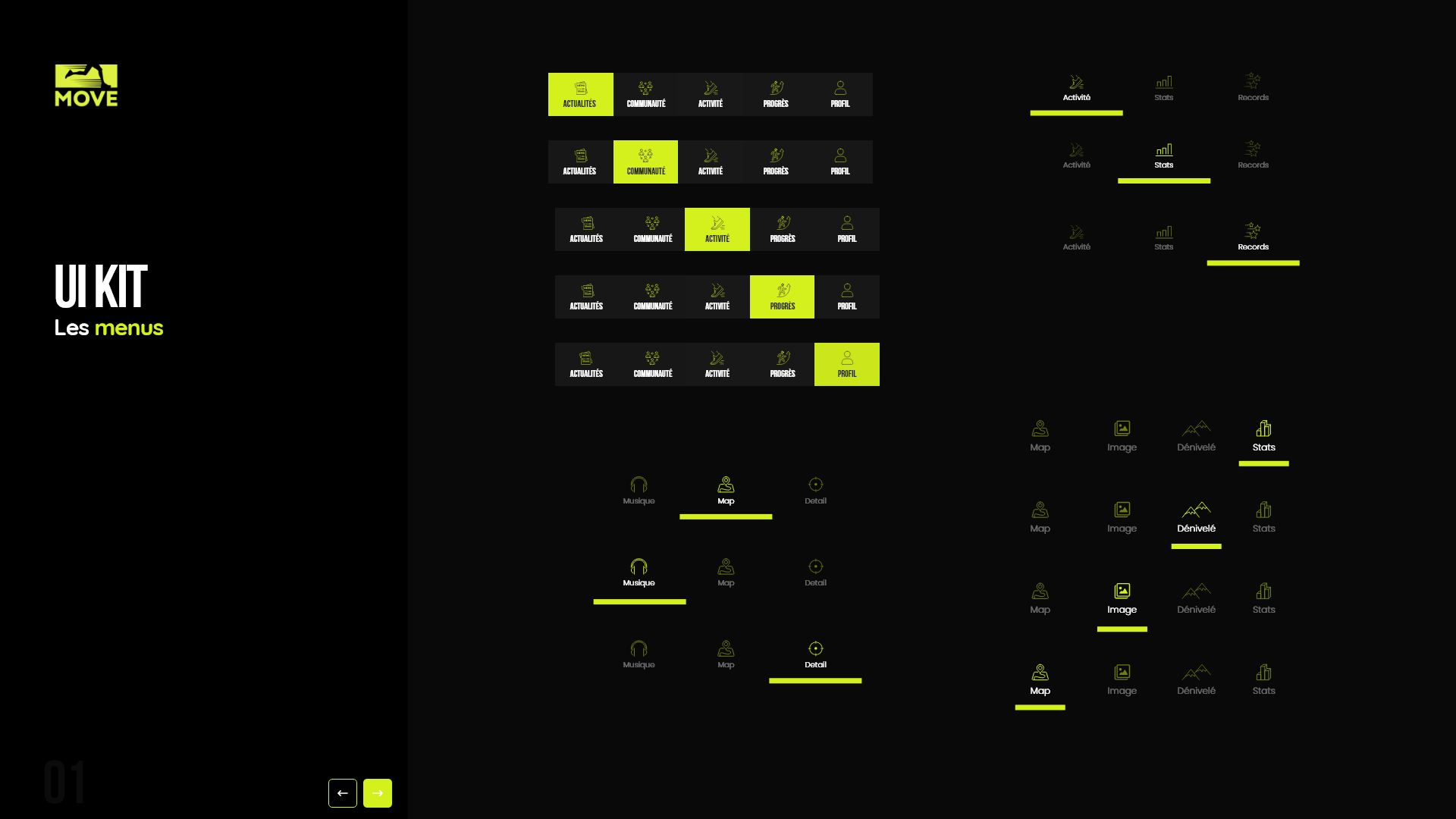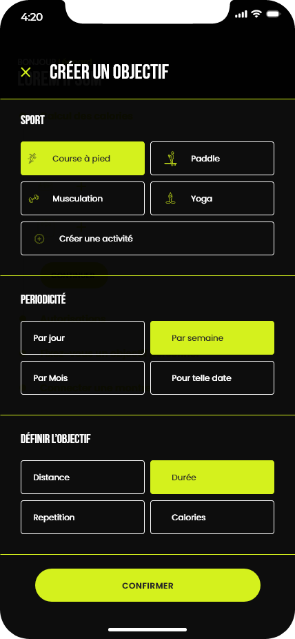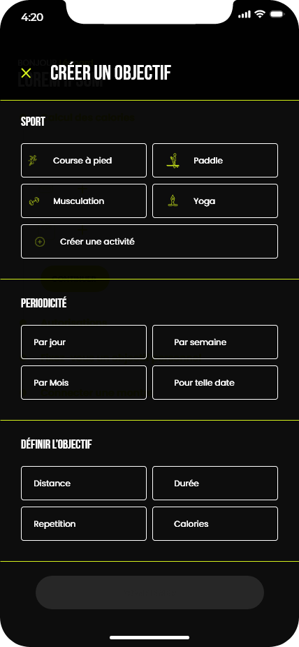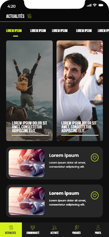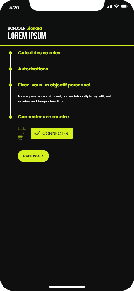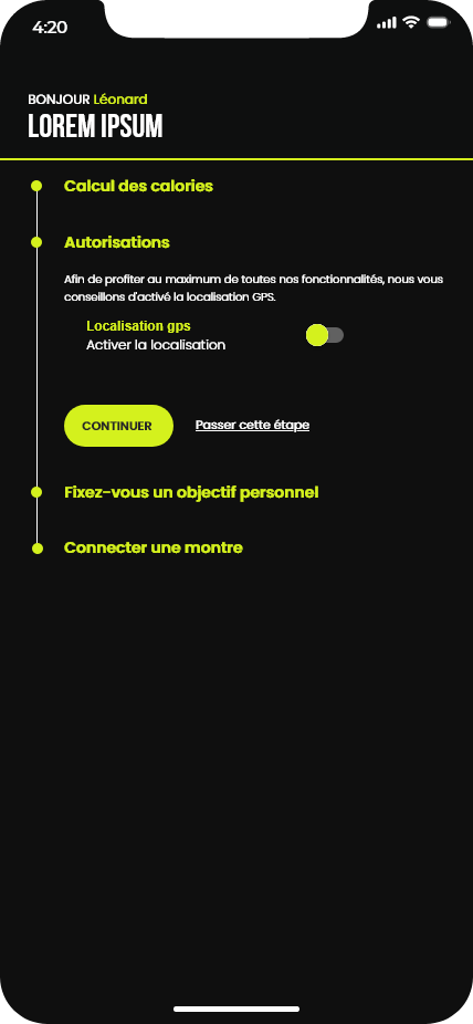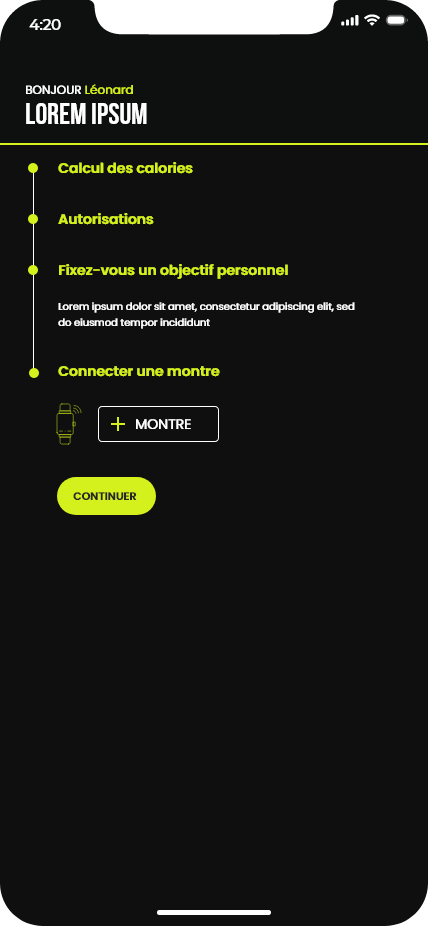 Ce projet consistait à concevoir les maquettes d’une application de running. Le travail a débuté par la création d’un design system basé sur la méthodologie Atomic Design, ainsi que par l’élaboration de la charte graphique de l’application. Ces éléments ont ensuite servi de base pour réaliser l’ensemble des maquettes de l’interface.