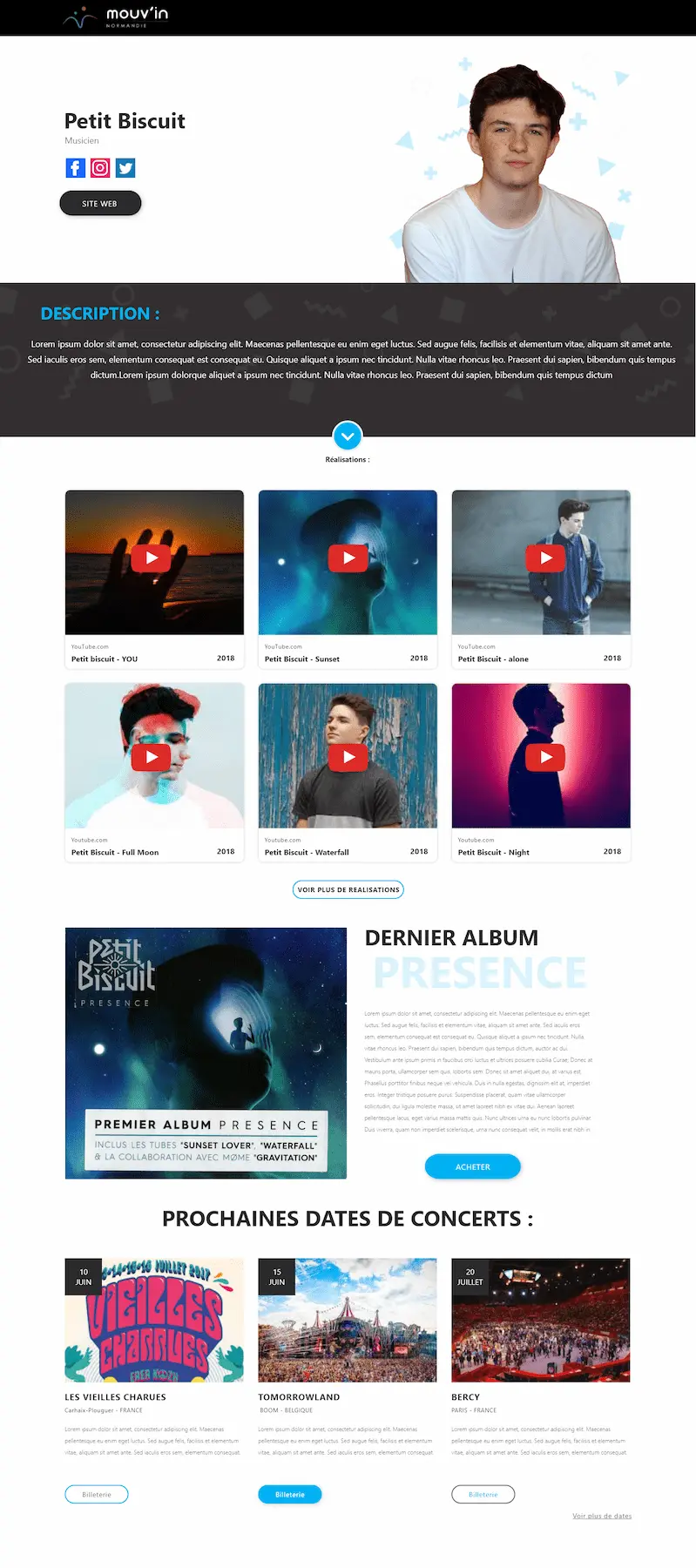 Mouvin est un projet réalisé dans le cadre de ma formation, proposé par l’école en collaboration avec un véritable client. L’objectif était de répondre à des besoins réels d’amélioration de leur présence web.
